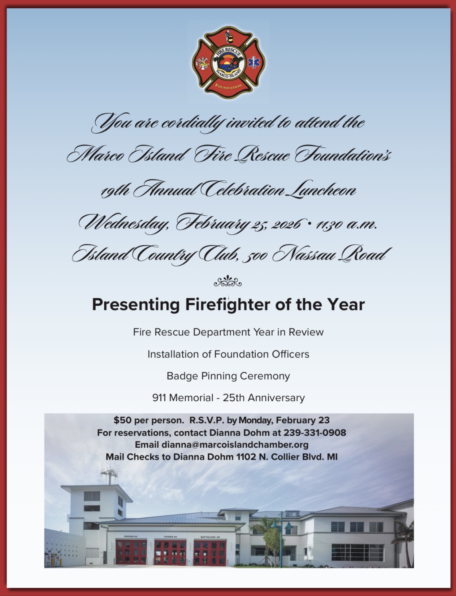 The Marco Island Fire Rescue Foundation is dedicated to providing financial relief and establishing a scholarship fund for Fire Rescue personnel and their families in the time of injury and illness.